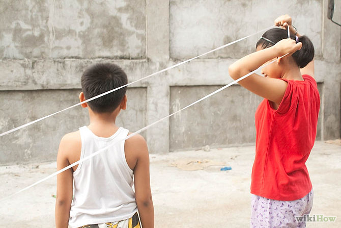 IT’S EASY. ALL YOU NEED IS A LONG ELASTIC CORD. AND TWO FRIENDS TO HOLD IT LIKE SO:
